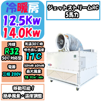 大型スポットエアコン ジェツトストリームは冷暖房機種です。種類か通常タイプRCタイプ 暖房能力強化 寒冷地RHSタイプからの選択